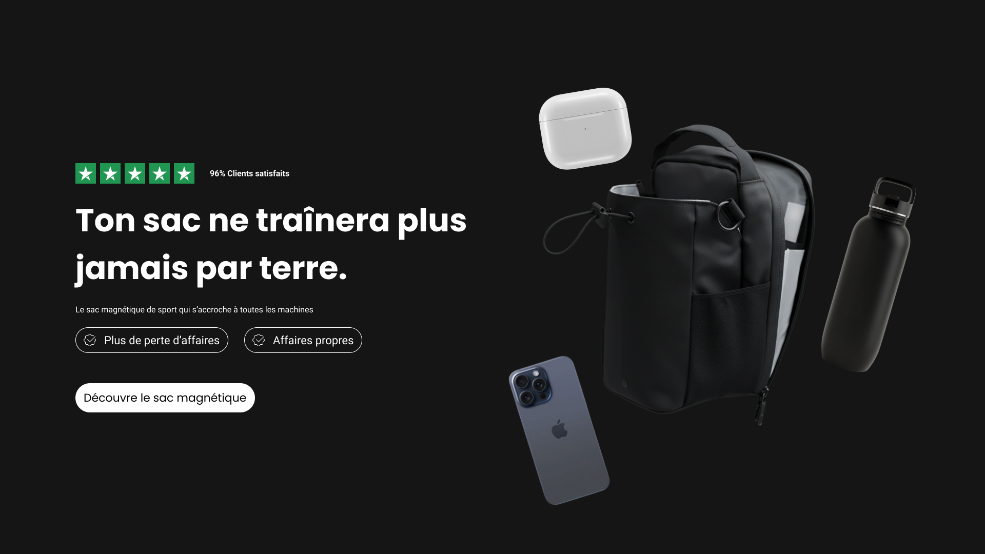 Grâce à la fixation magnétique, tes essentiels restent accessibles sans jamais toucher le sol.