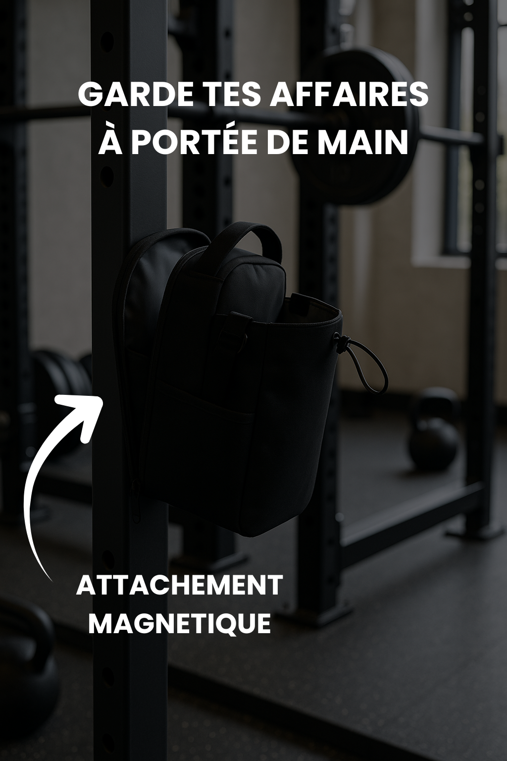 Grâce à la fixation magnétique, tes essentiels restent accessibles sans jamais toucher le sol.